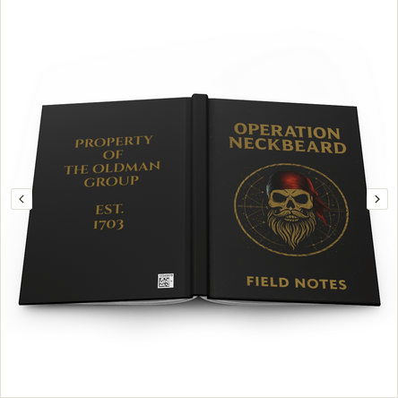 Step into the world behind the legend. The Neckbeard Collection brings the lore of Neckbeard the Awesome Pirate and the shadowy Oldman Group straight into your hands—one irreverent, beautifully crafted piece at a time. From covert flags and executive tees to journals, mugs, and contraband pouches worthy of a pirate’s stash, every item is designed to feel like it fell through a wormhole from the story itself. Whether you’re here for the adventure, the mystery, or just the laugh, this is where fiction and fashion shake hands over a glass of rum.